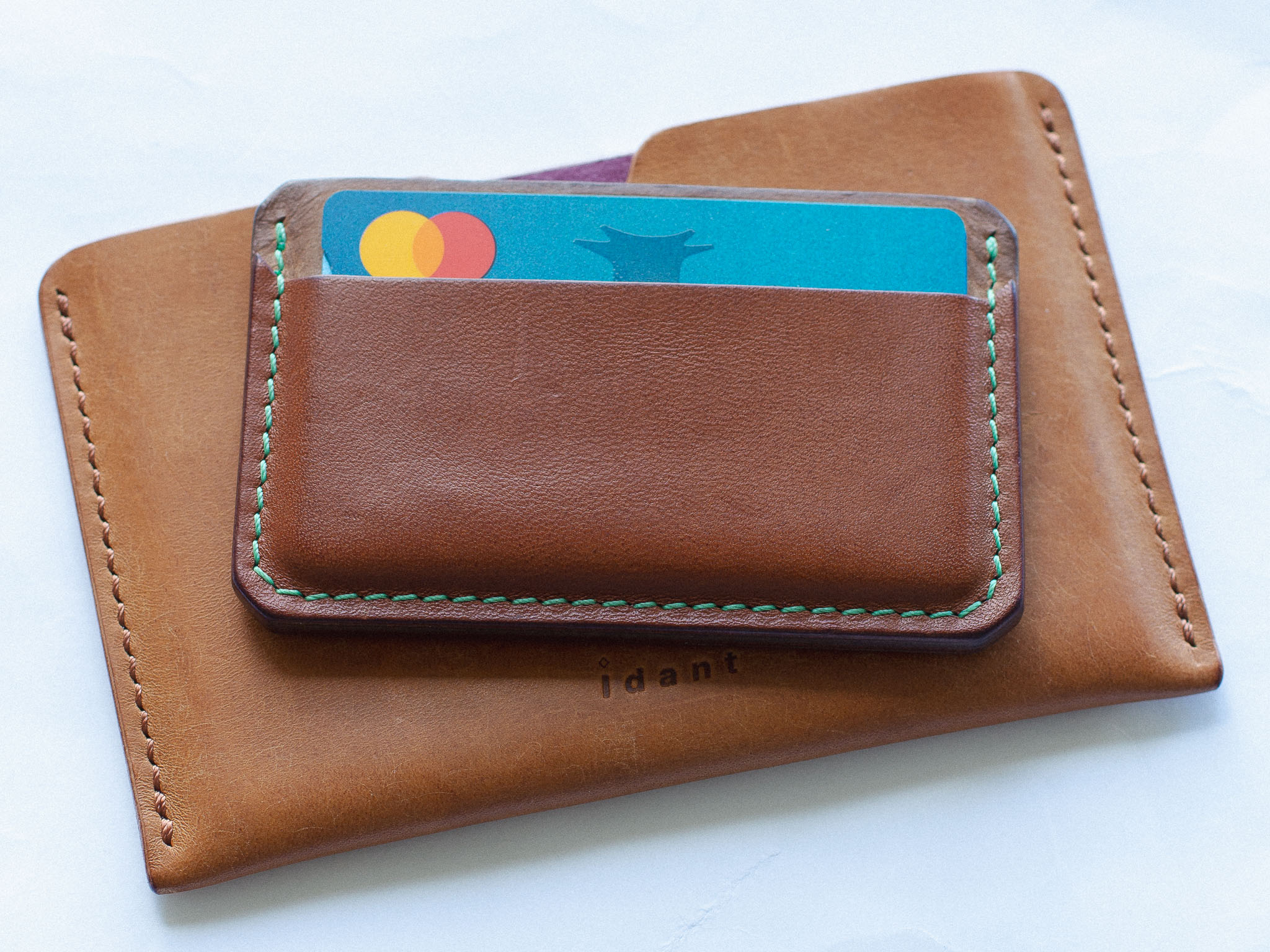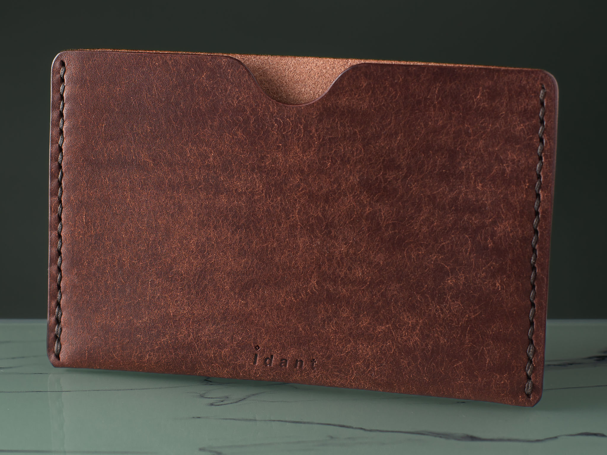 All our products are sewn entirely by hand using the traditional “saddle-stitch” method, a technique that machines cannot replicate. We use legendary threads like Ritza 25 and Vinymo MBT—both are thick, braided polyesters, waxed for extreme durability, and considered the gold standard for hand-sewing. This traditional process guarantees that the seams on your wallet will never unravel or come apart.