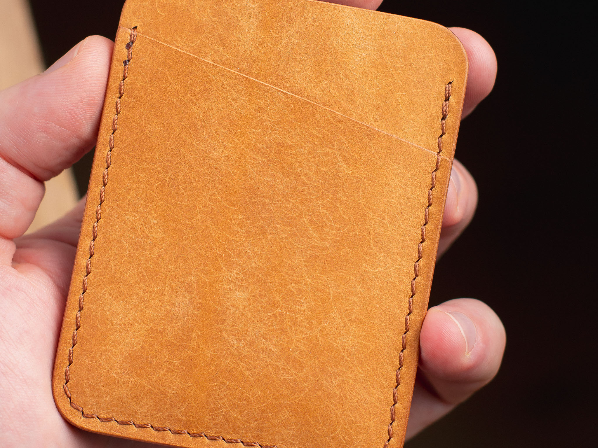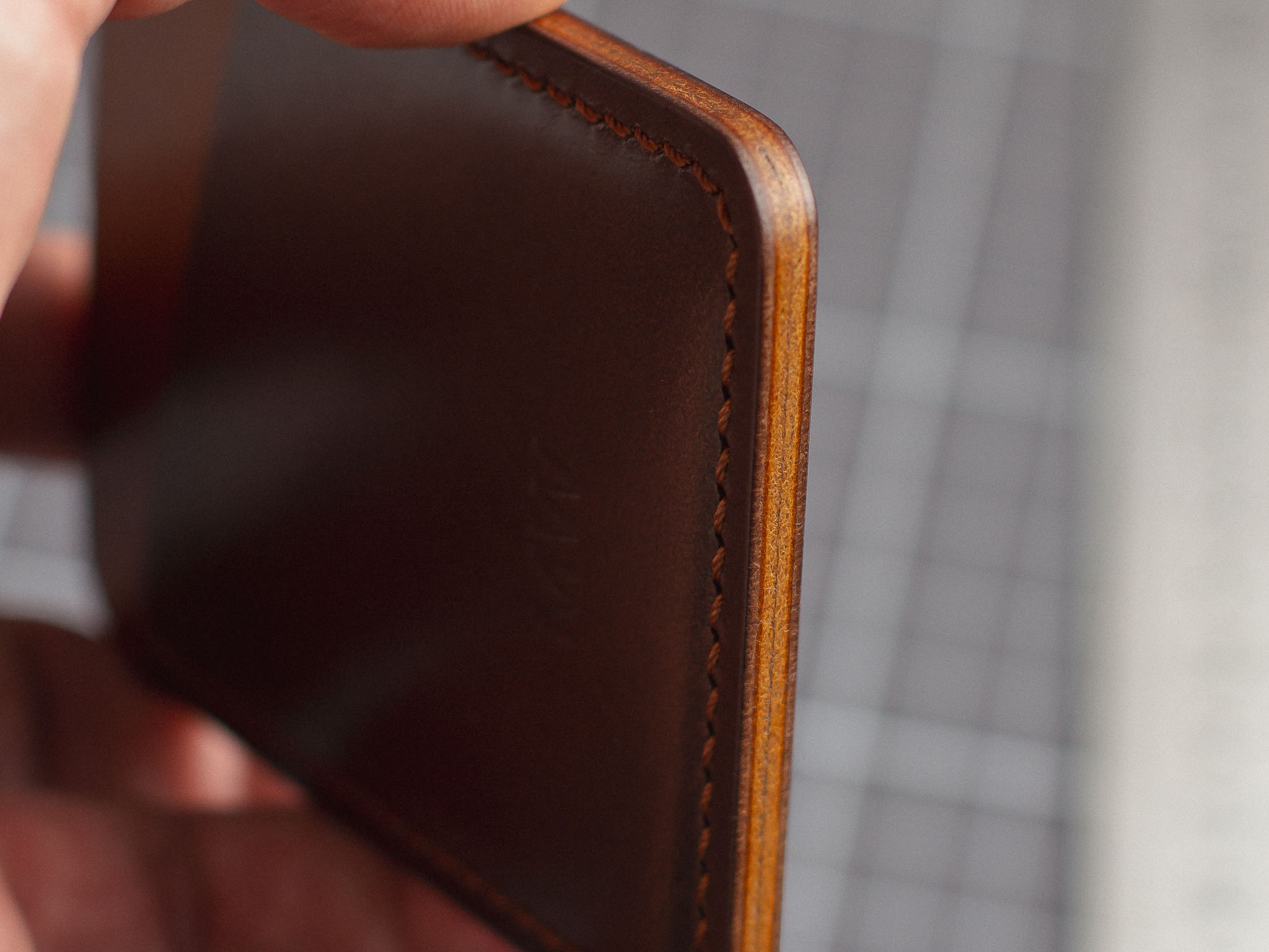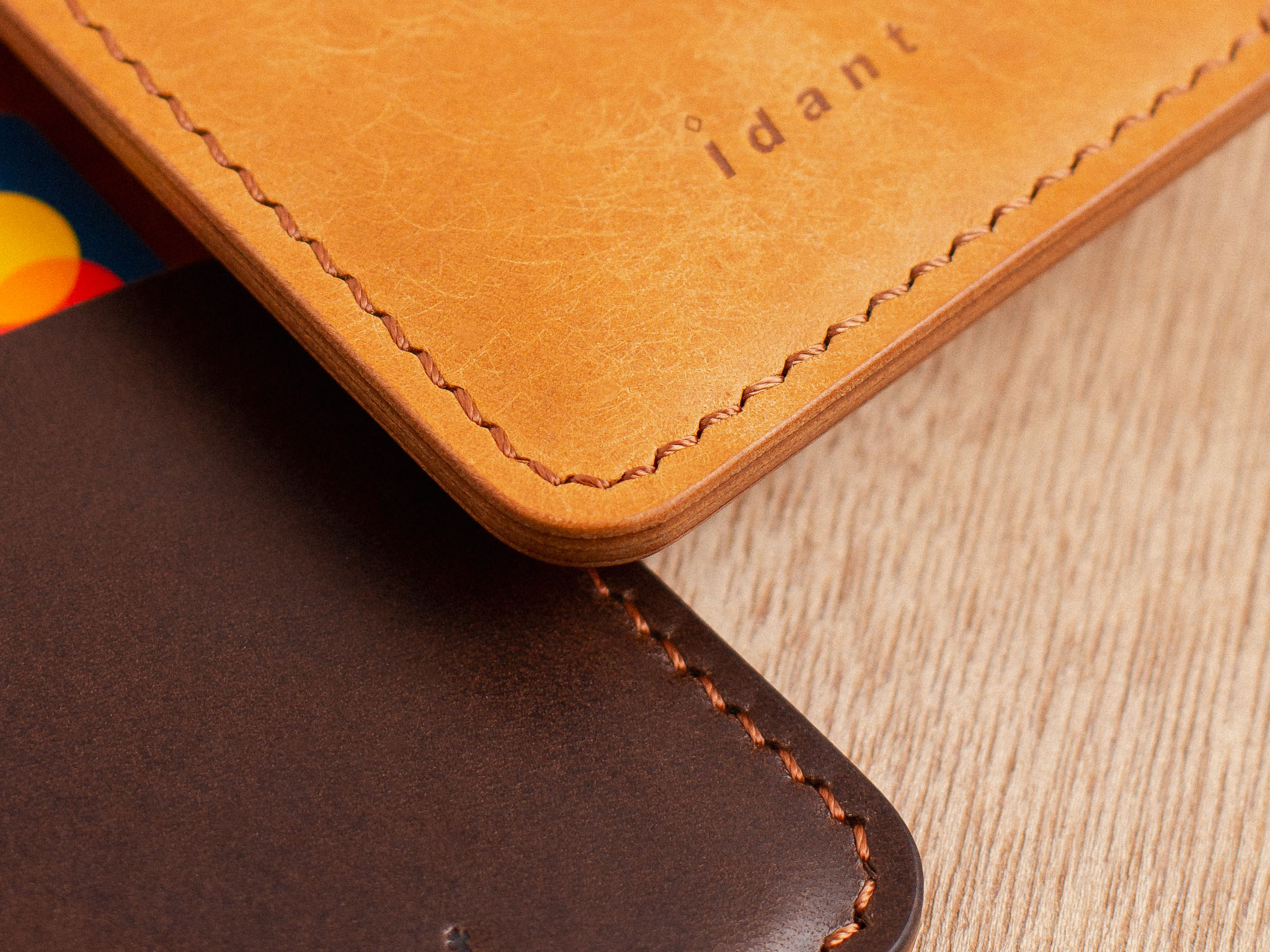All our products are sewn entirely by hand using the traditional “saddle-stitch” method, a technique that machines cannot replicate. We use legendary threads like Ritza 25 and Vinymo MBT—both are thick, braided polyesters, waxed for extreme durability, and considered the gold standard for hand-sewing. This traditional process guarantees that the seams on your wallet will never unravel or come apart.